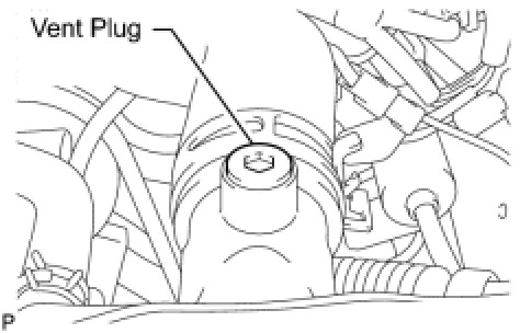 (b) Remove the radiator reservoir cap, and using a 6 mm hexagon wrench, remove the vent plug.