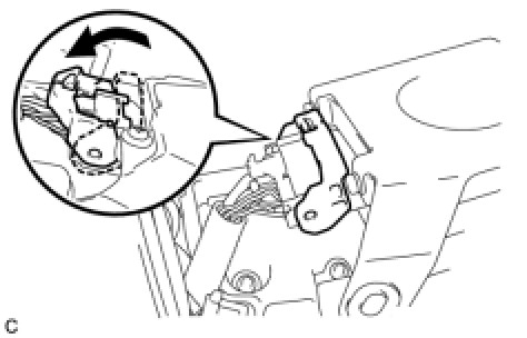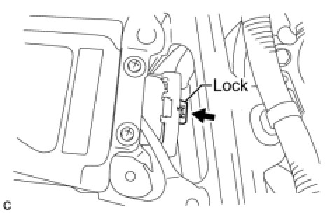 (c) Connect the power steering ECU connector on the left side of the vehicle and securely lock the lock lever as shown in the illustration.
