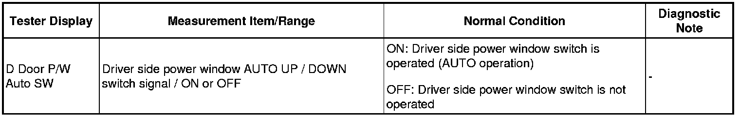 2. READ VALUE USING TECHSTREAM (POWER WINDOW SWITCH)