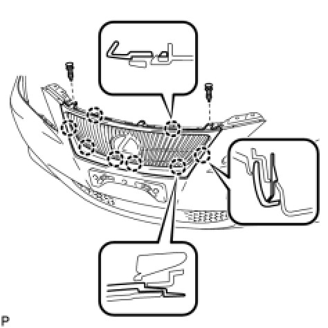 (a) Disengage the 13 claws and remove the radiator grille protector.