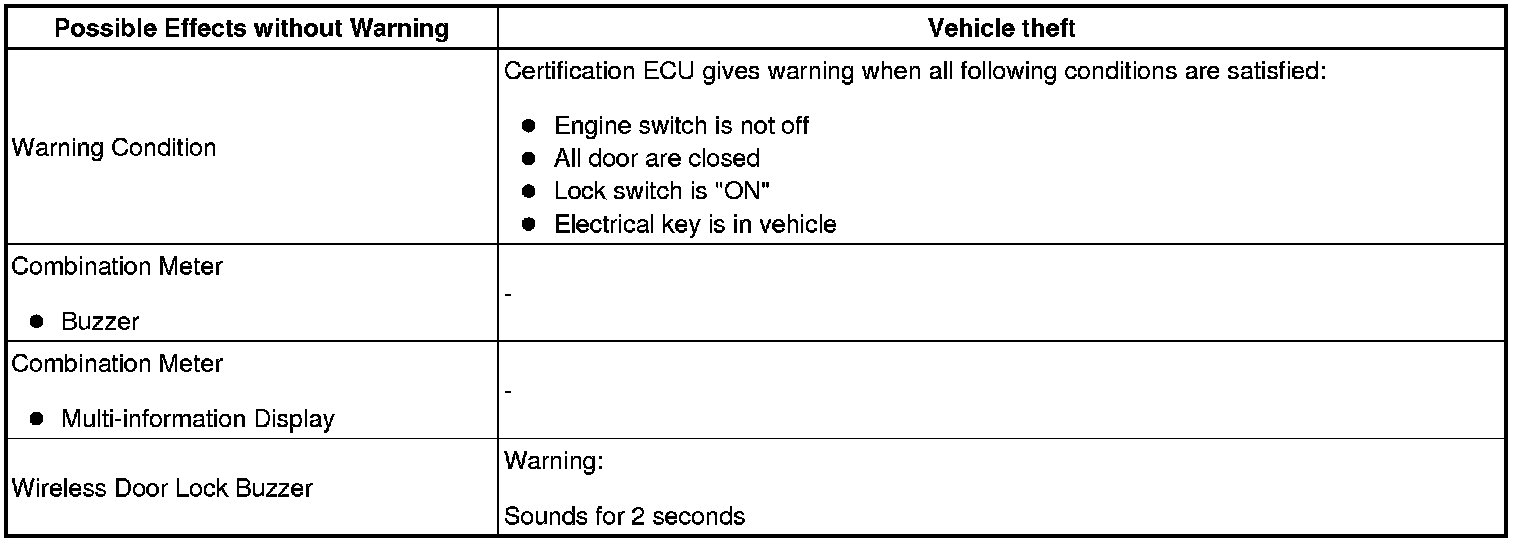 (d) If the electrical key is located inside of the cabin, the door lock function will not operate and the alarm buzzer (beep sound) will sound for 2 seconds.