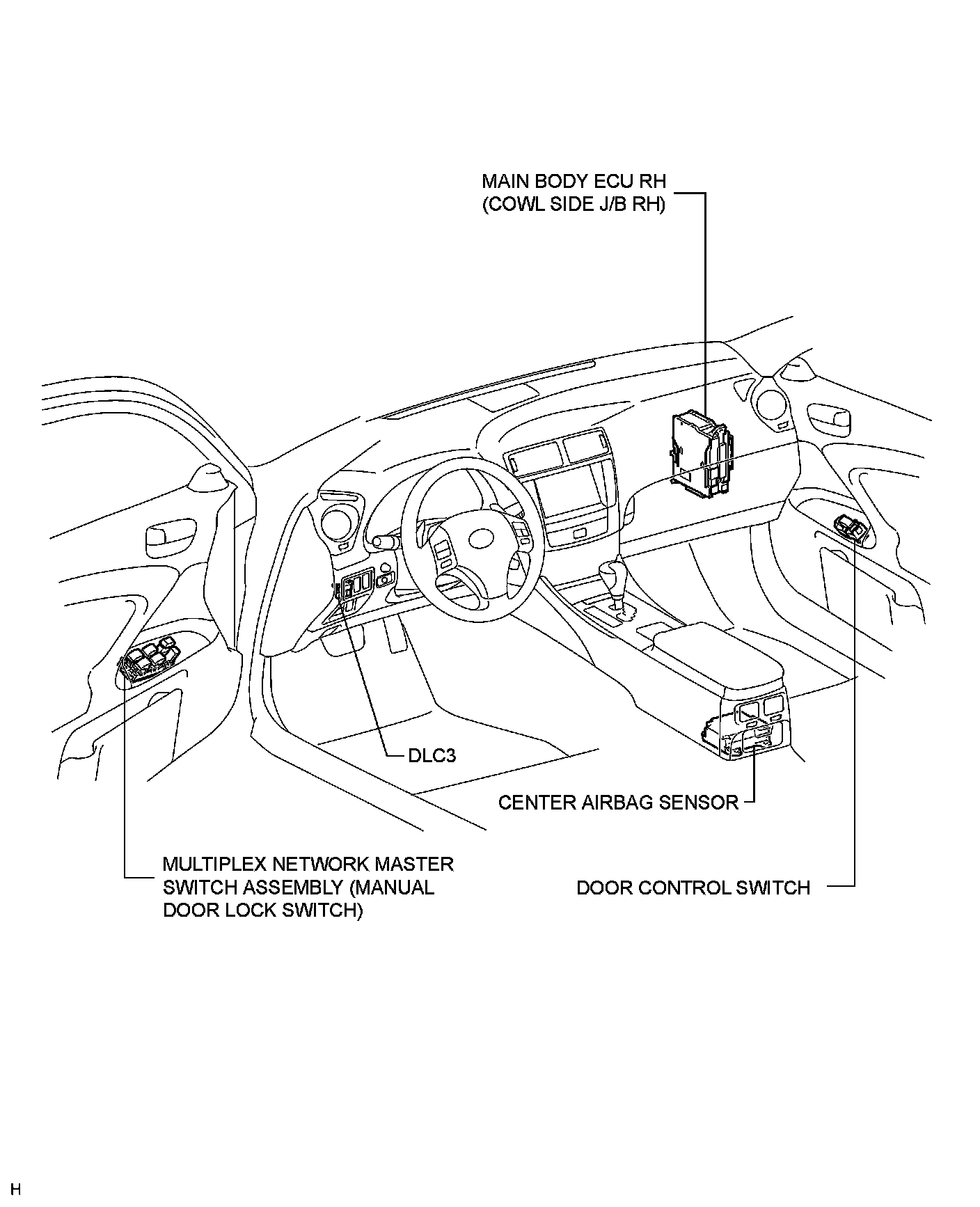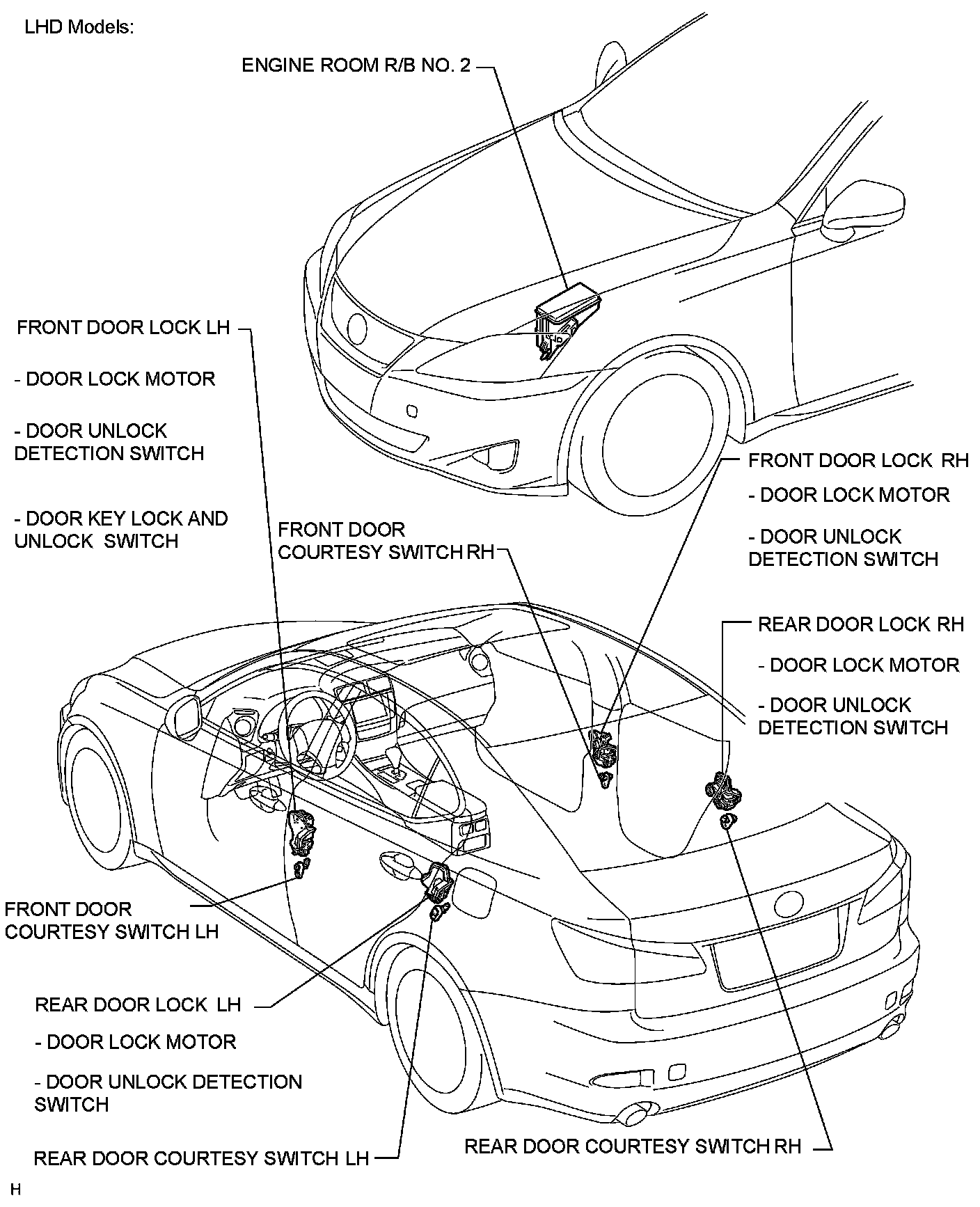 DOOR LOCK: POWER DOOR LOCK CONTROL SYSTEM: PARTS LOCATION