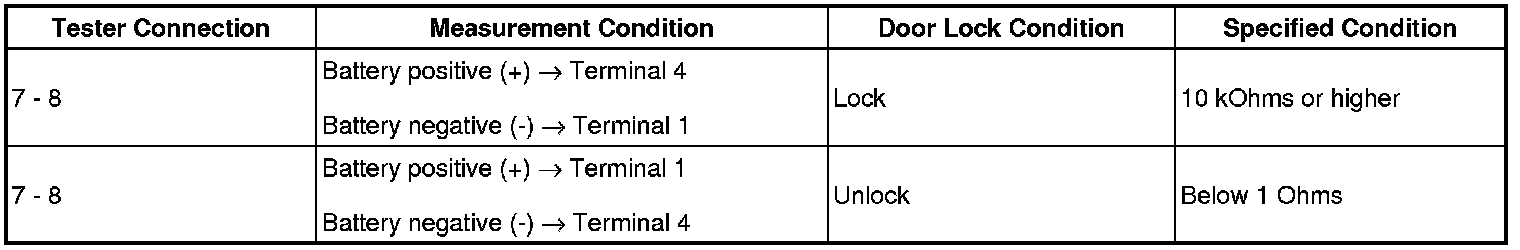 The multiplex network master switch assembly applies voltage to the door unlock detection switch via terminal LSW. When the door unlock detection switch is on (there is continuity between the switch terminals), a lock state signal is input to the multiplex network master switch assembly. When the switch is off (there is no continuity between the switch terminals), an unlock state signal is input.