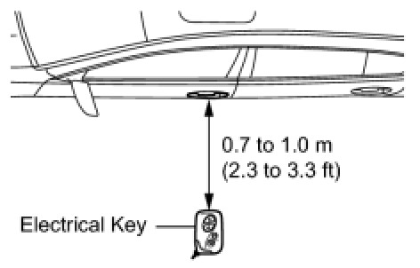 NOTE: The electrical key cannot communicate with the system within a 0.2 m (0.6 ft) radius of each outside handle.