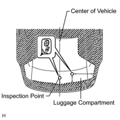 (2) Inspect the electrical key lock-in prevention's detection area. Pay attention to the direction of the electrical key shown in the illustration. When the electrical key is in either of the 2 locations in the illustration, check that: 1) closing the luggage compartment door sounds the electrical key's wireless buzzer, and 2) pressing the power luggage door open switch opens the luggage compartment door.