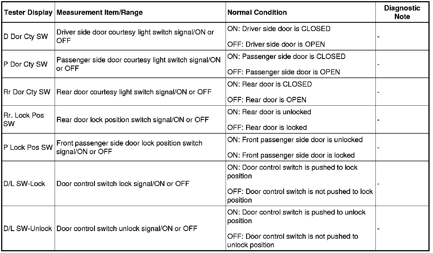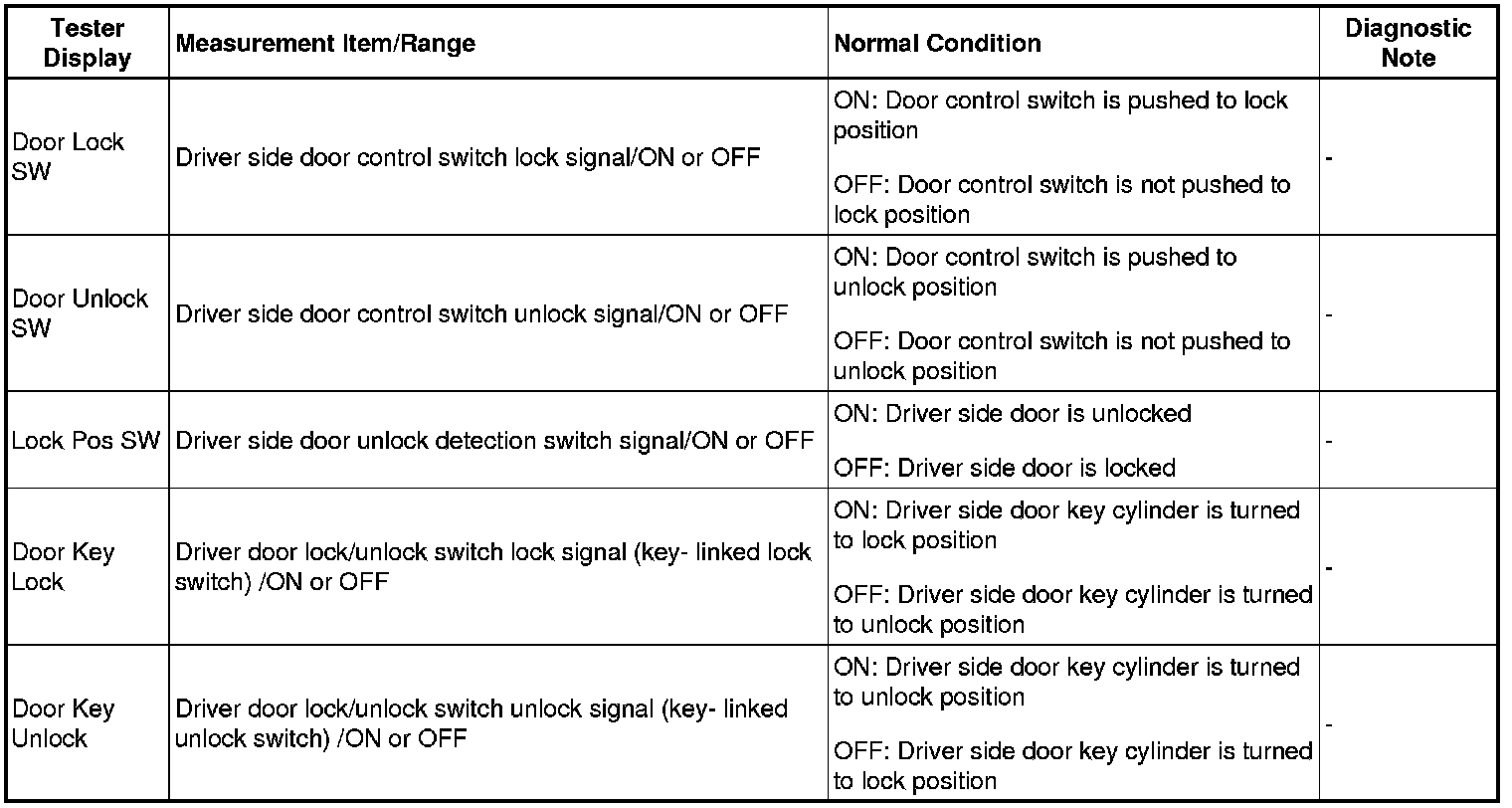 DOOR LOCK: POWER DOOR LOCK CONTROL SYSTEM: DATA LIST / ACTIVE TEST