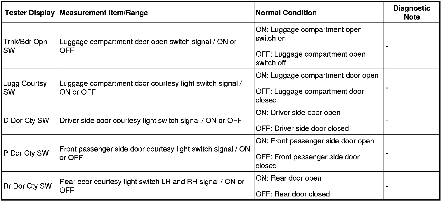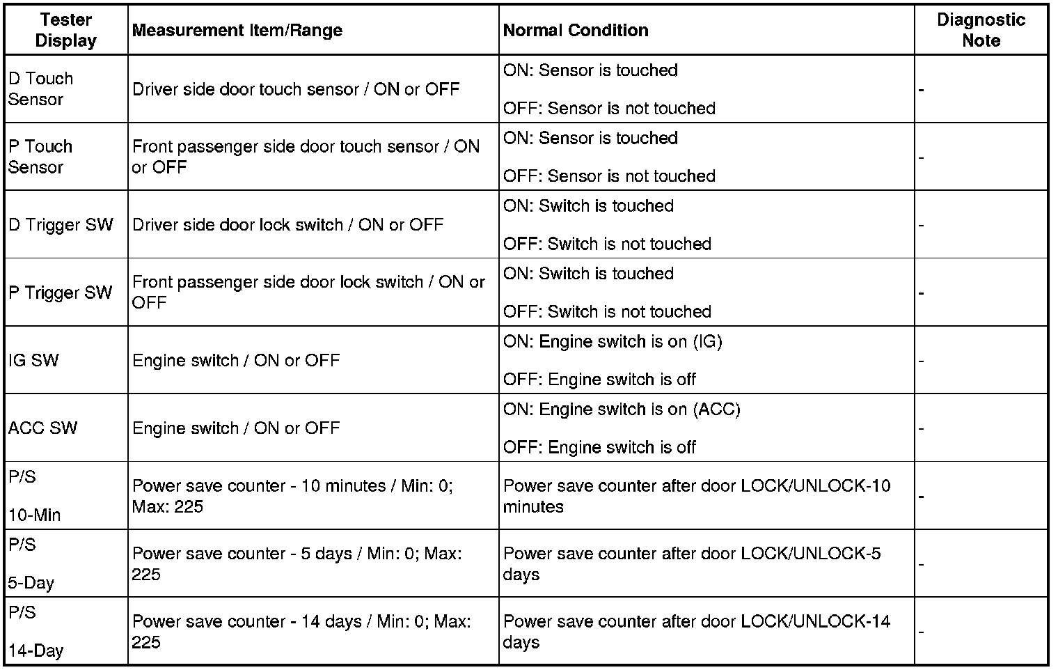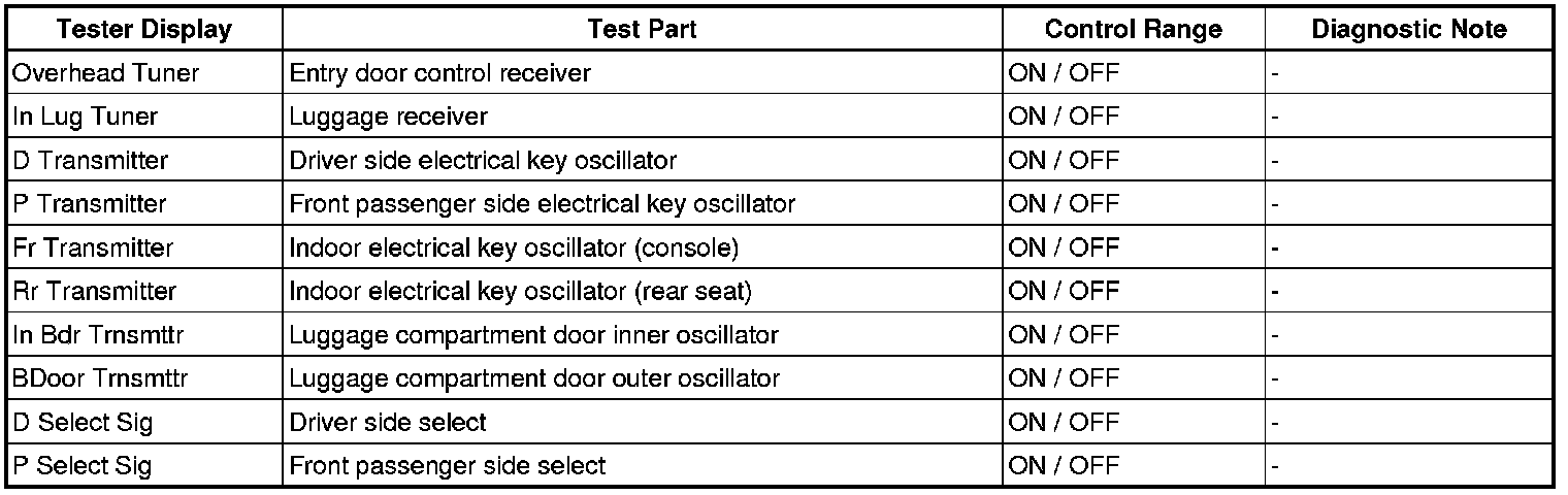 DOOR LOCK: SMART ACCESS SYSTEM WITH PUSH-BUTTON START: DATA LIST / ACTIVE TEST