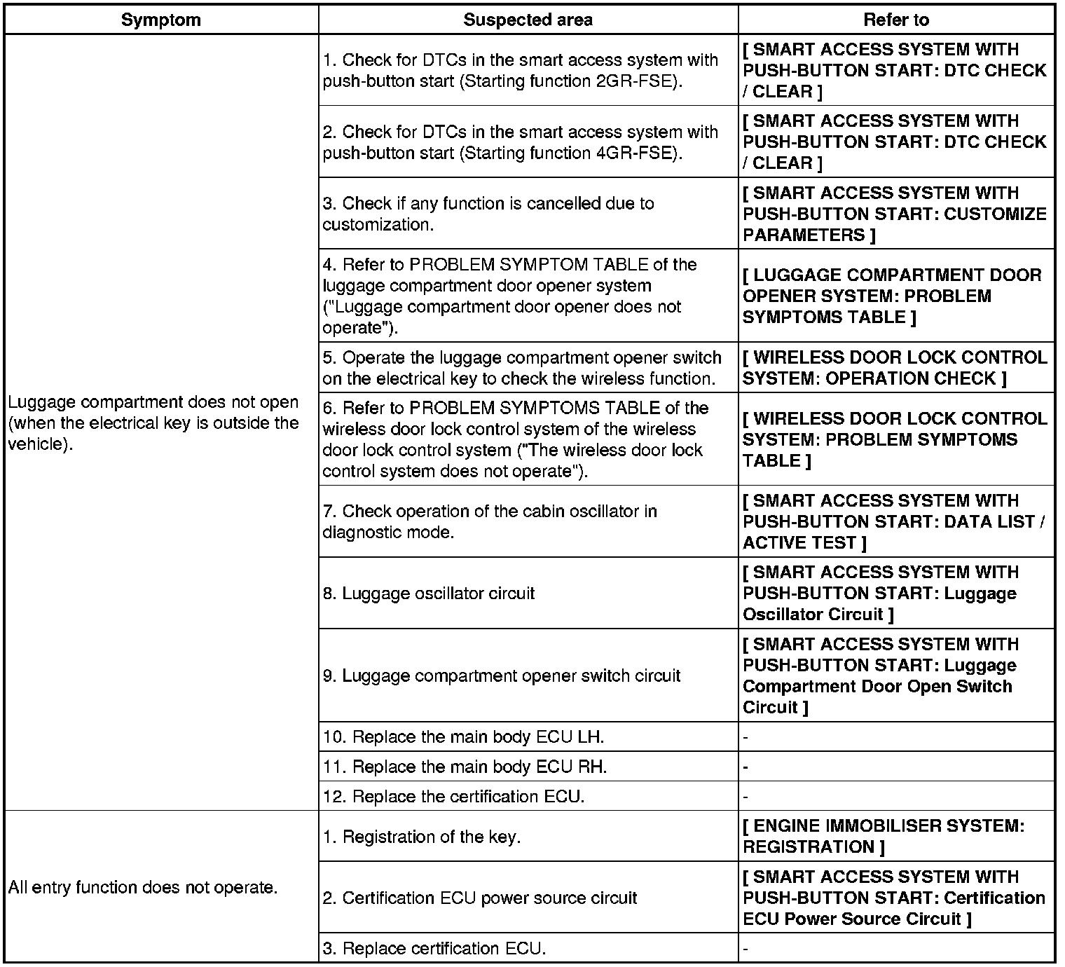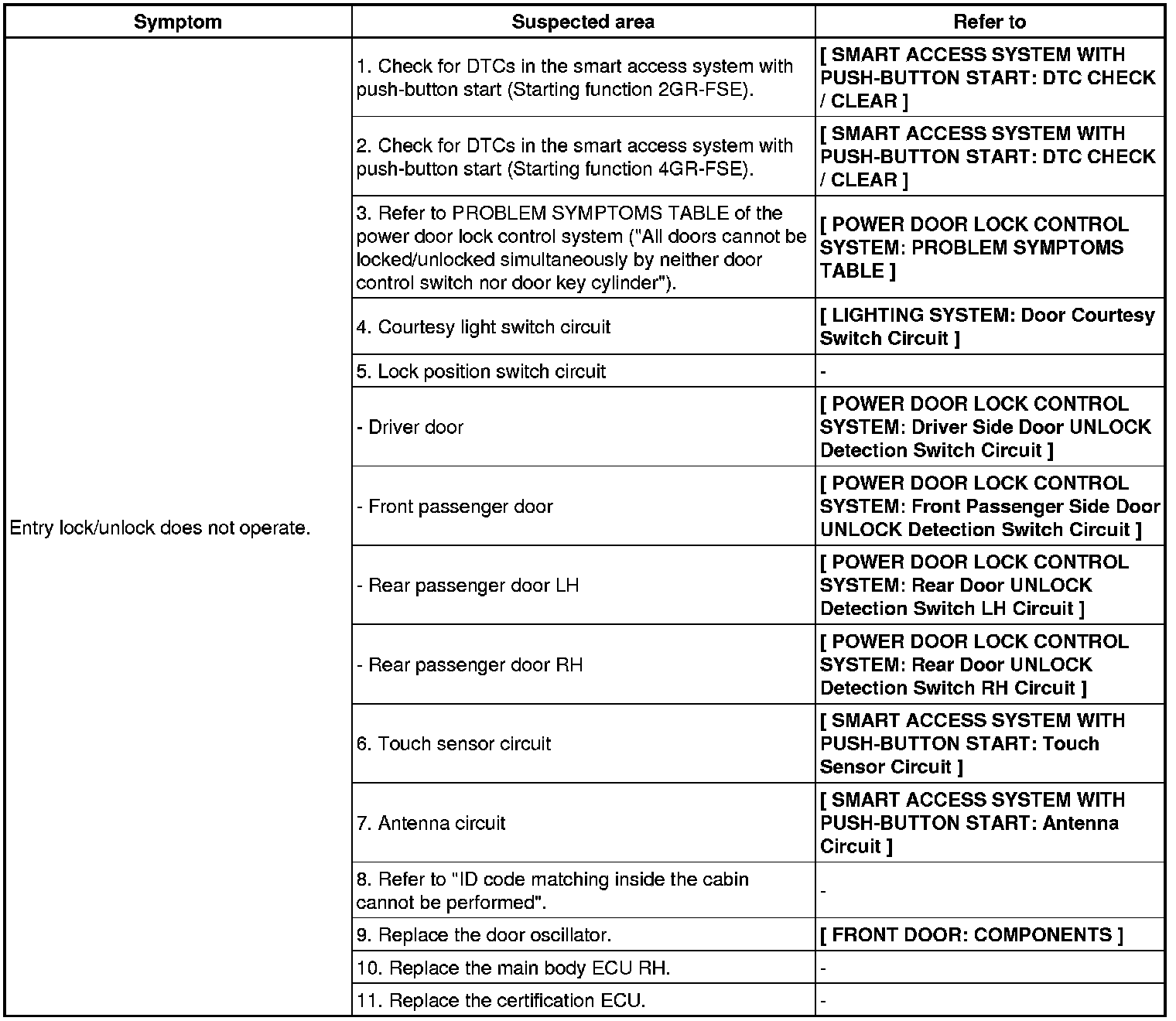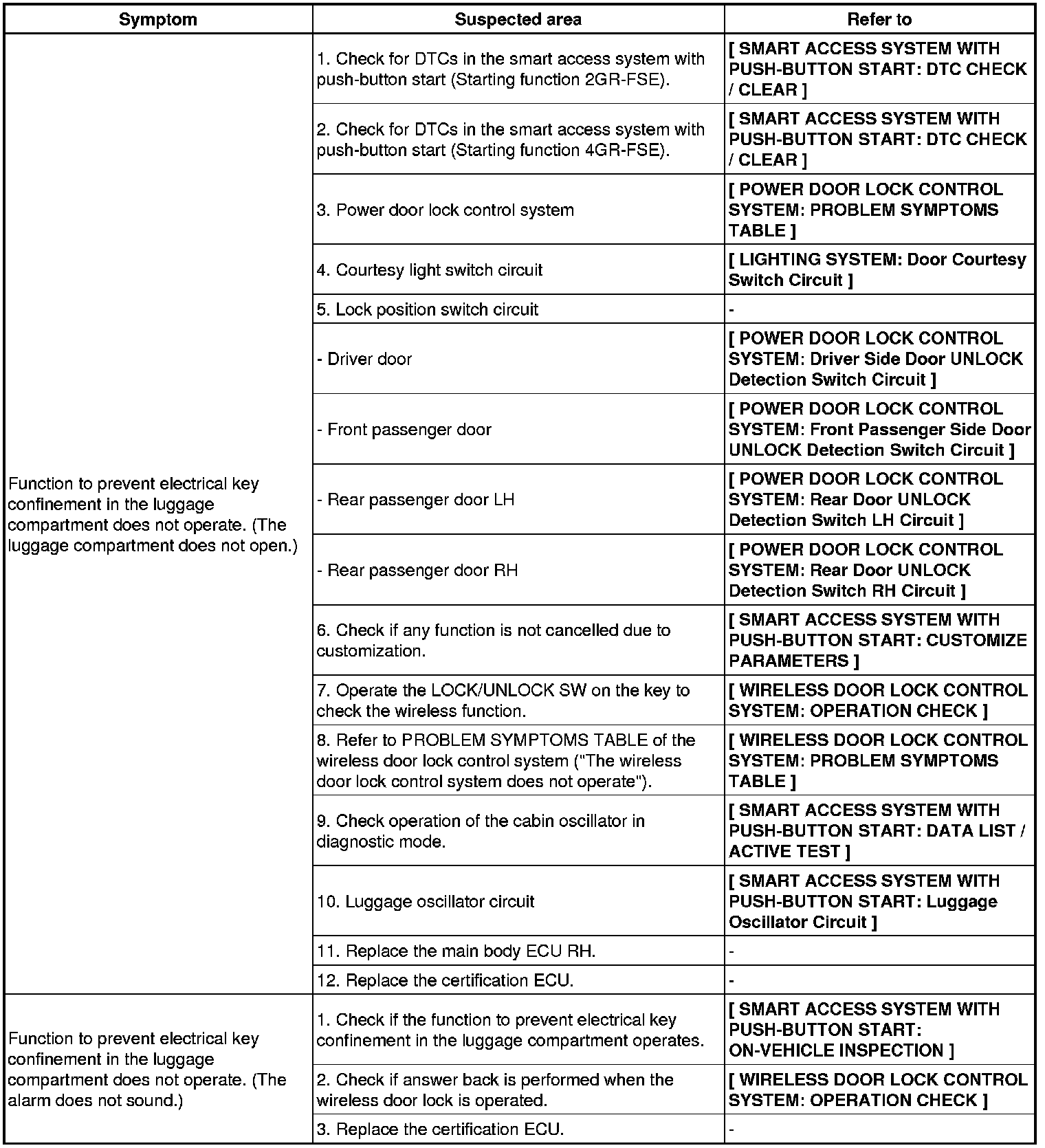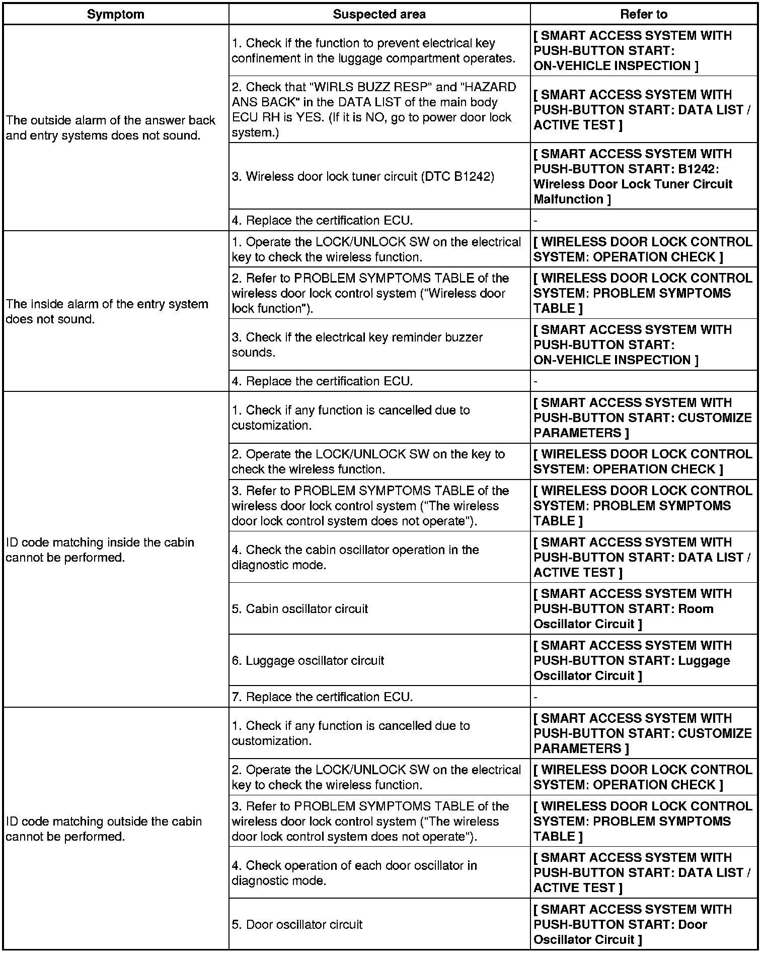 - Use the table below to help determine the cause of the problem symptoms. The potential causes of the symptoms are listed in order of probability in the ''Suspected Area'' column of the table. Check each symptom by checking the suspected areas in the order they are listed. Replace parts as necessary.