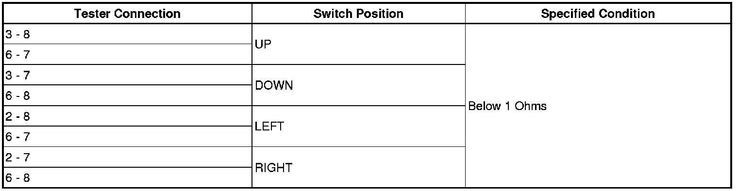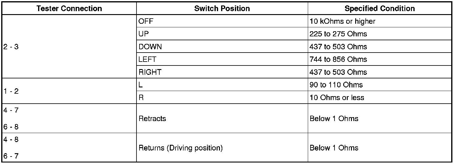 2. INSPECT OUTER MIRROR SWITCH (w/ Seat Position Memory System)