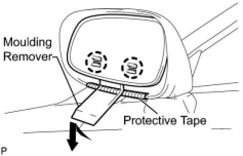 (b) Using a moulding remover, disengage the 2 claws at the lower part of the outer rear view mirror, and separate the outer rear view mirror glass.