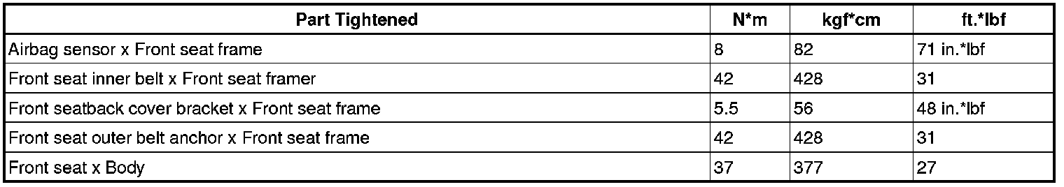 SERVICE SPECIFICATIONS: SEAT: TORQUE SPECIFICATIONS