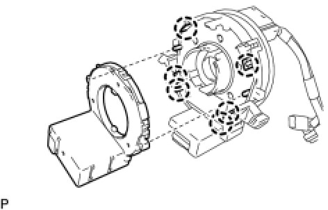 (a) Align the locating pins, engage the 6 claws and install the steering angle sensor to the spiral cable sub-assembly.