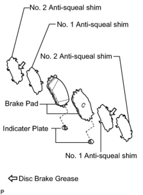 - Disc brake grease is applied between anti-squeal shim No.1 and No. 2.