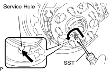 (a) Using SST, install the No. 2 parking brake shoe assembly with the No. 1 shoe hold down spring cup, No. 1 compression spring and No. 1 shoe hold down spring pin.