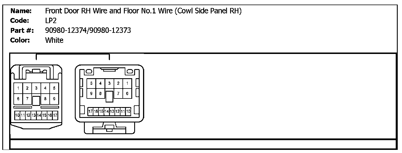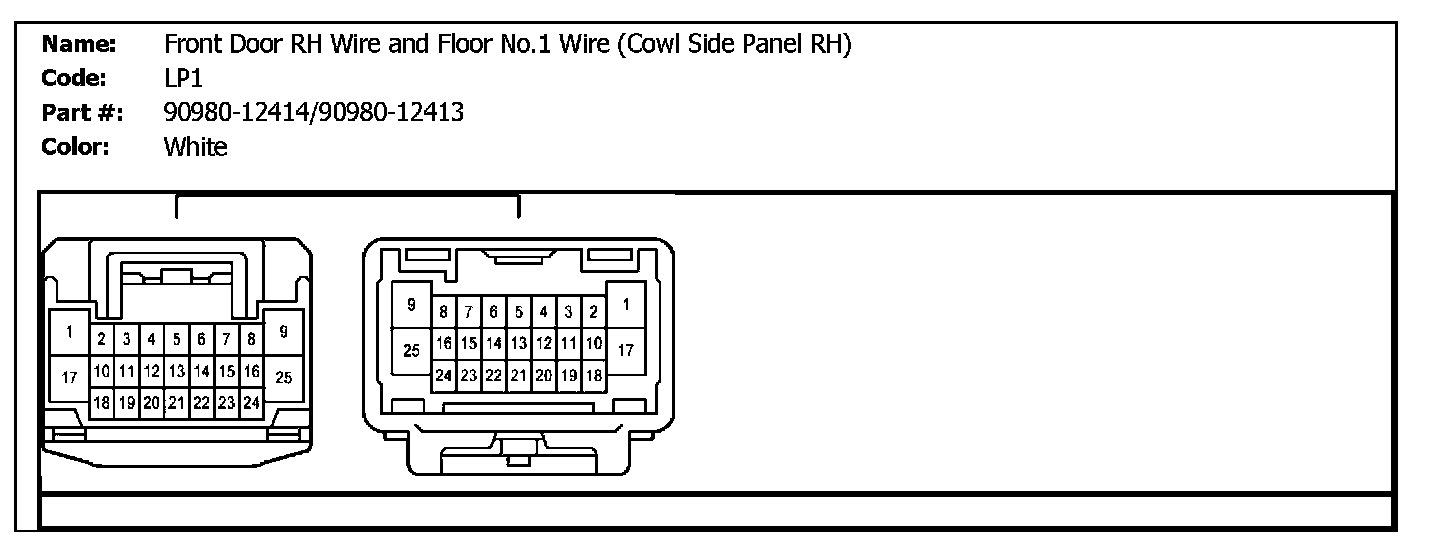 LP1 (Front Door RH Wire And Floor No.1 Wire (Cowl Side Panel RH)):