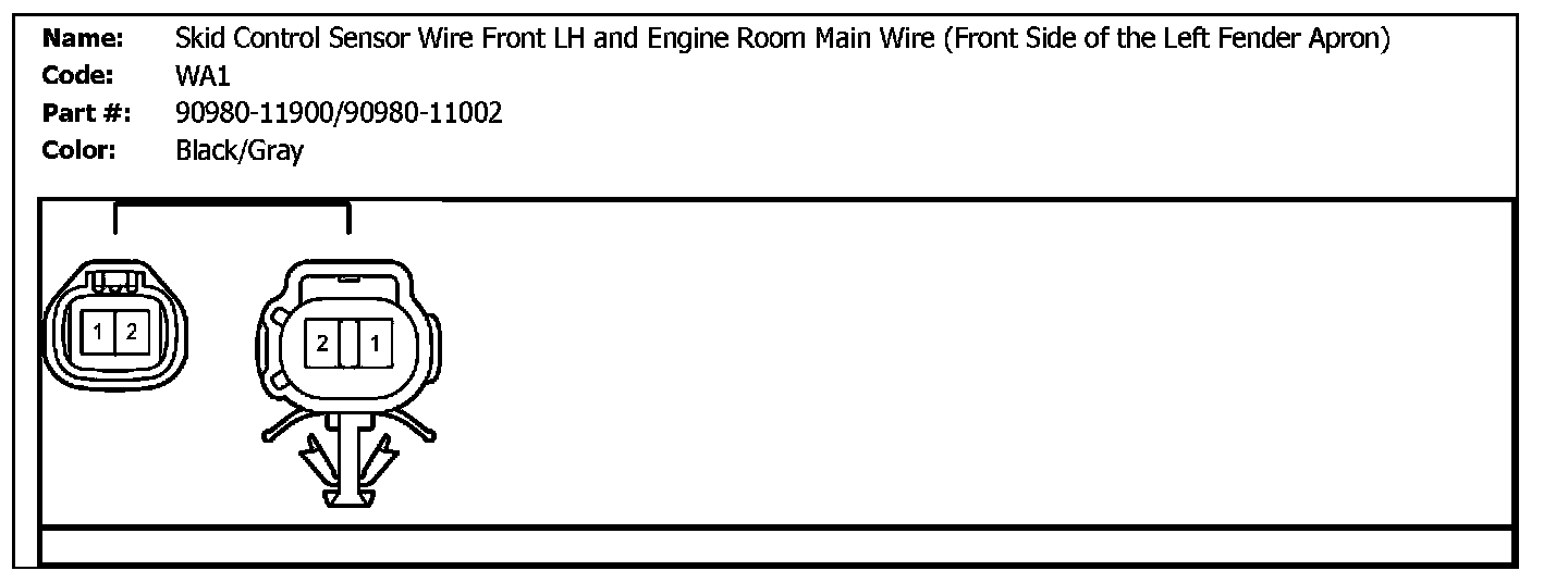 WA1 (Skid Control Sensor Wire Front LH And Engine Room Main Wire (Front Side Of The Left Fender Apron)):