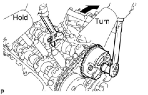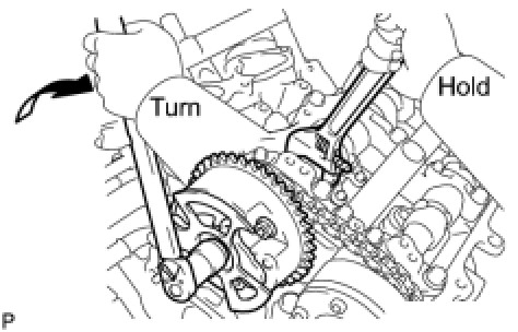 (c) Turn the camshaft timing gear assembly on the RH bank counterclockwise to tighten the chain between the banks.