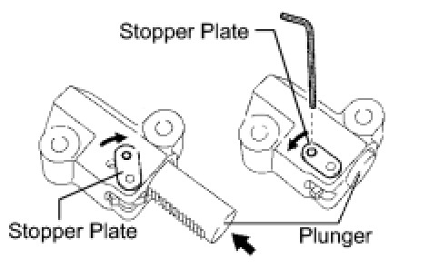(a) Move the stopper plate upward to release the lock, and push the plunger deep into the tensioner.