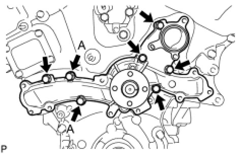 HINT: Temporarily tighten the 8 bolts. Fully tighten 2 bolts A as shown in the illustration before tightening the other bolts.