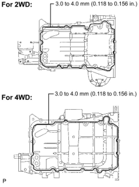 - Install the oil pan within 3 minutes after applying seal packing.