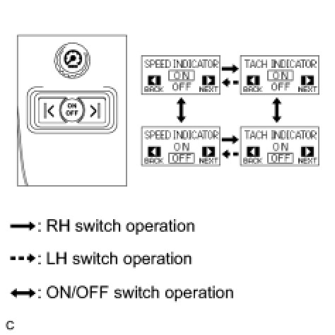 (3) Turn the SPEED INDICATOR or TACH INDICATOR function on again by using the ON/OFF switch.