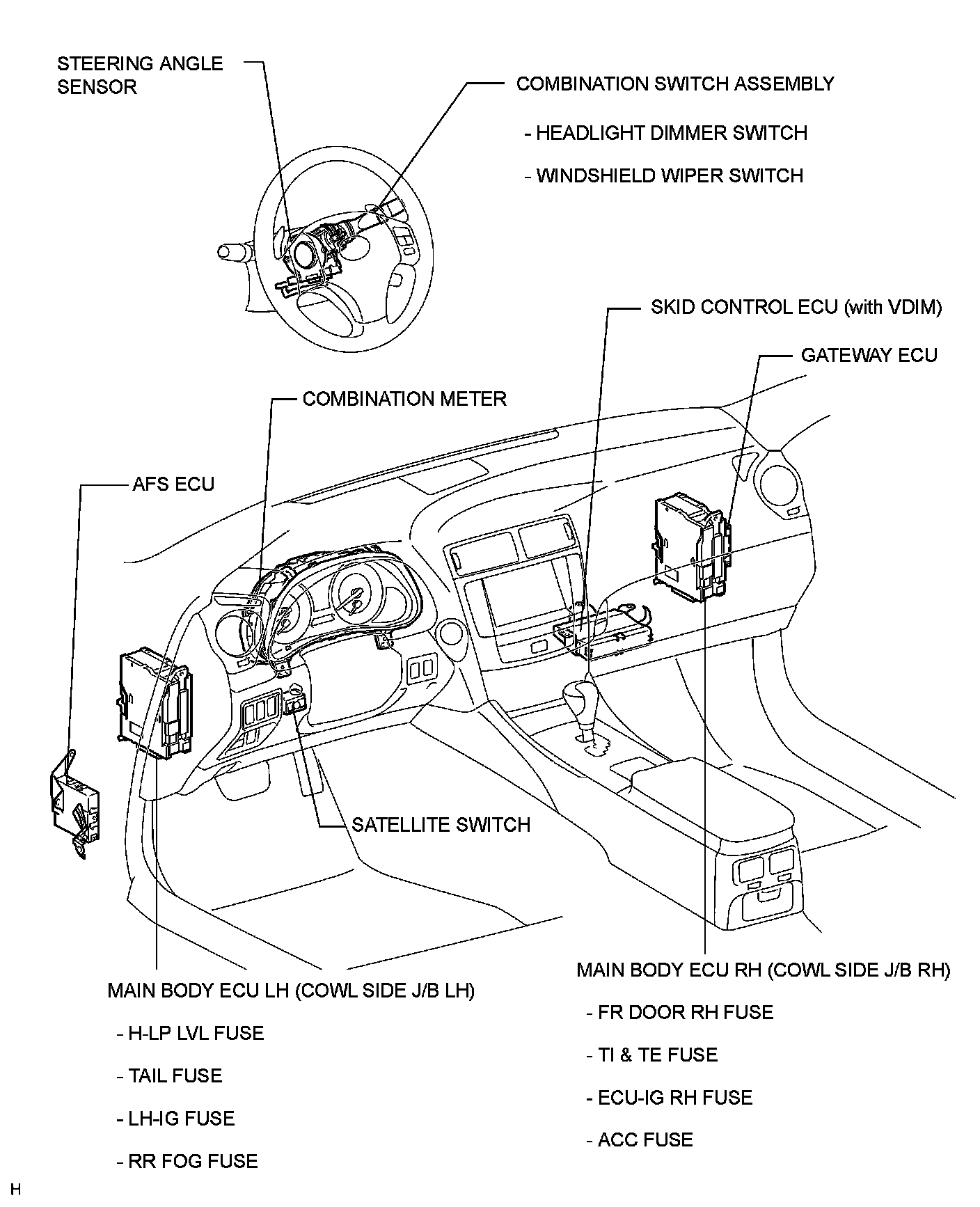 Headlamp Alignment Control Module: Locations