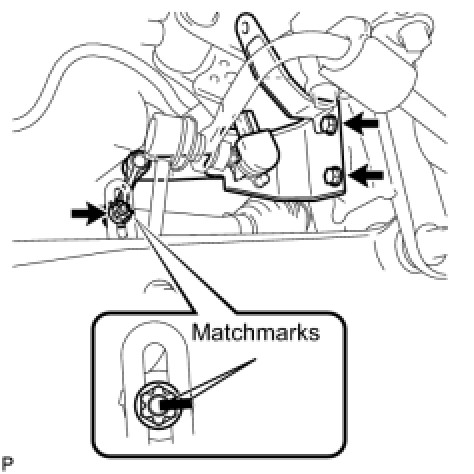 (1) Align the matchmarks and also the trace of the nut, and install the rear height control sensor sub-assembly and bracket.
