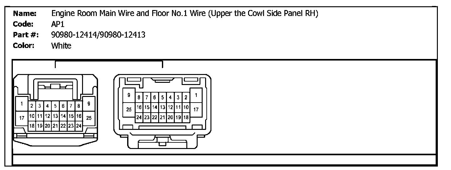 AP1 (Engine Room Main Wire And Floor No.1 Wire (Upper The Cowl Side Panel RH)):