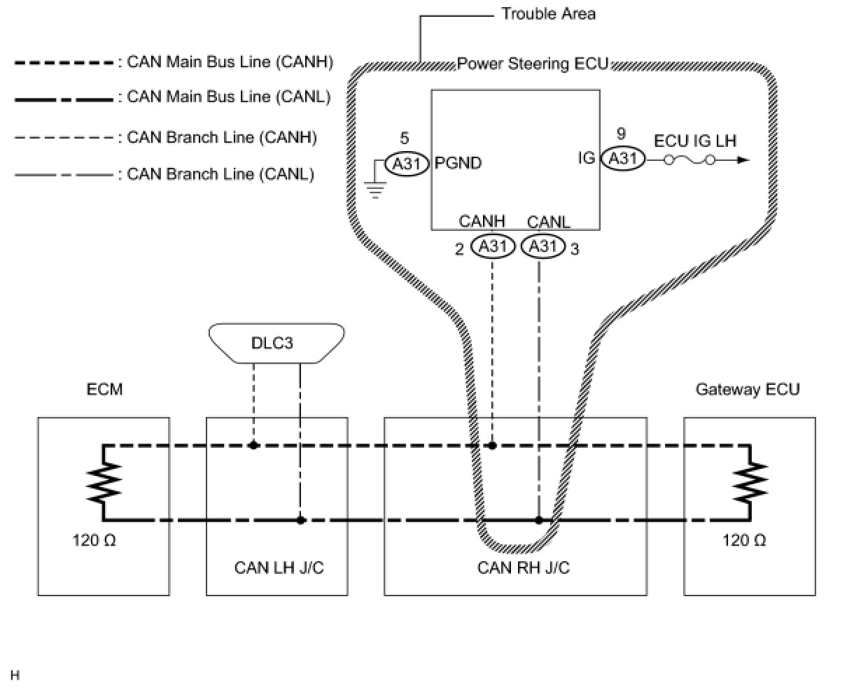 NG -- REPAIR OR REPLACE POWER STEERING ECU BRANCH WIRE OR CONNECTOR (CANH, CANL)
