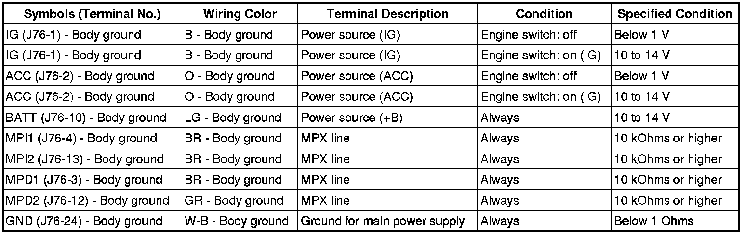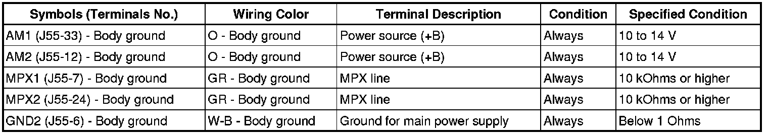 If the result is not as specified, there may be a malfunction on the wire harness side.