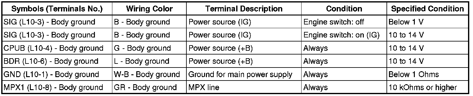 10. CHECK OUTER MIRROR CONTROL ECU RH