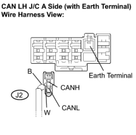 (a) Disconnect the CAN main bus line connector (J2) from the CAN LH J/C A side (with earth terminal).