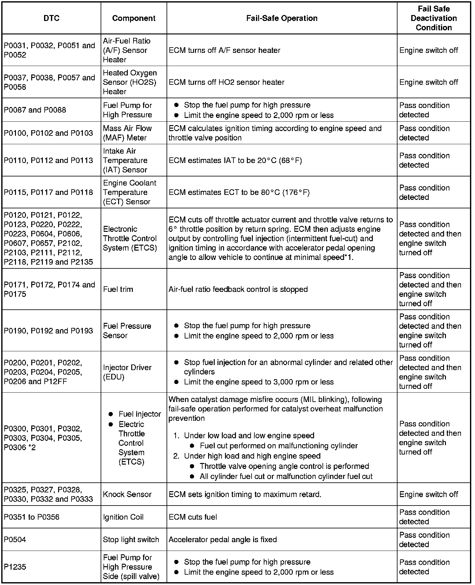 - *2: Misfire related fail-safe operations occur when catalyst overheat malfunction occur.