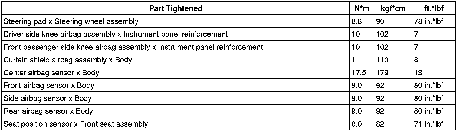 SERVICE SPECIFICATIONS: SUPPLEMENTAL RESTRAINT SYSTEM: TORQUE SPECIFICATIONS