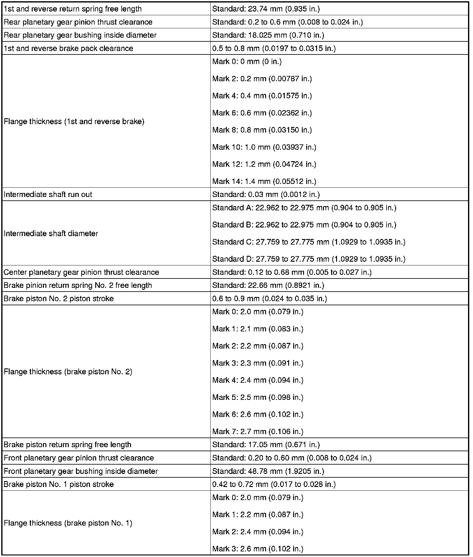 SERVICE SPECIFICATIONS: A960E AUTOMATIC TRANSMISSION: SERVICE DATA