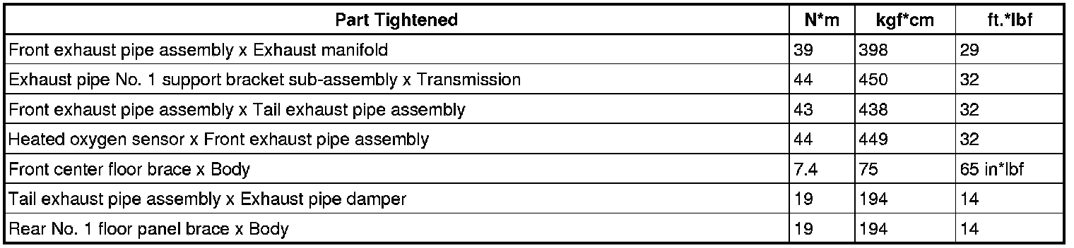 SERVICE SPECIFICATIONS: 4GR-FSE EXHAUST: TORQUE SPECIFICATIONS