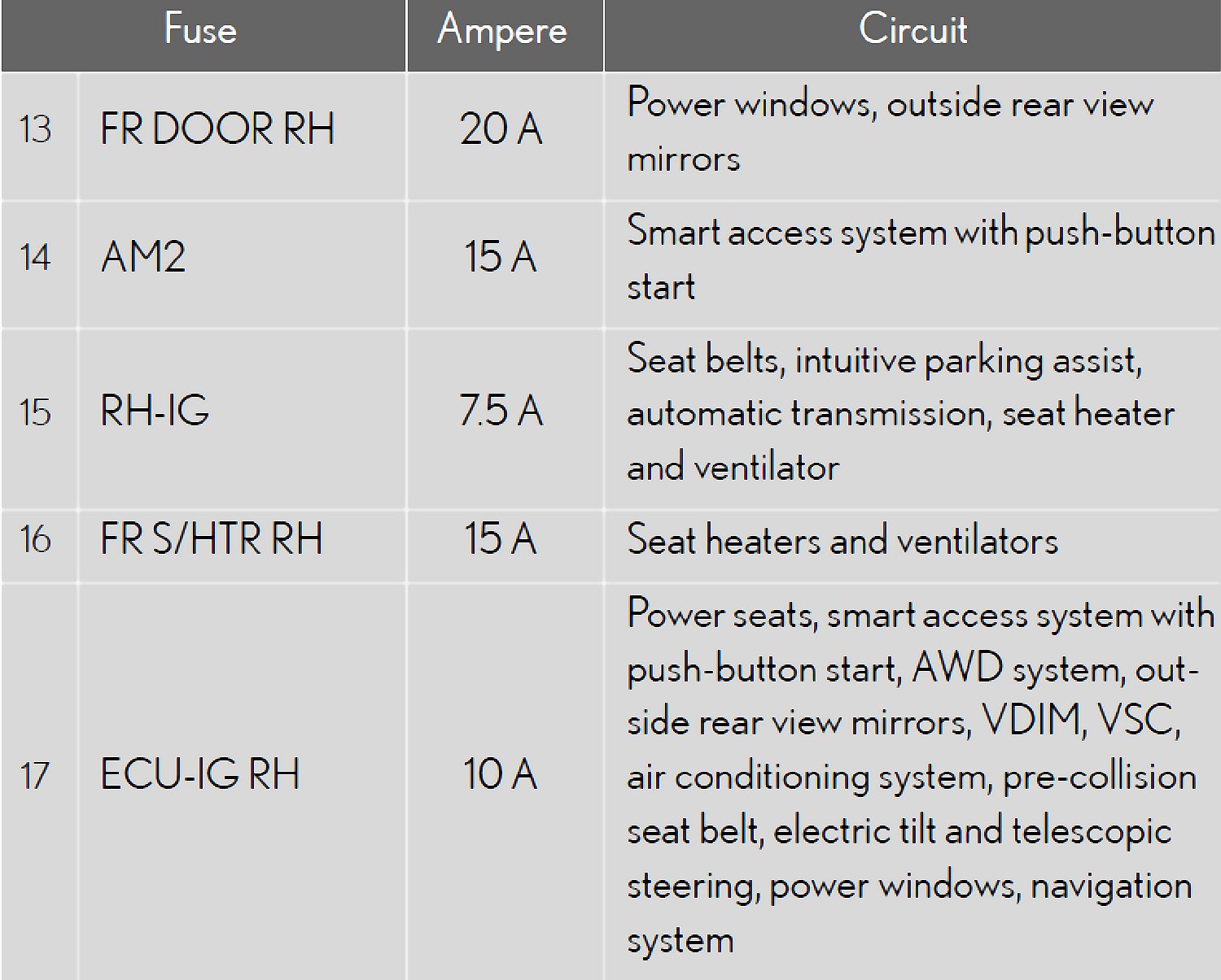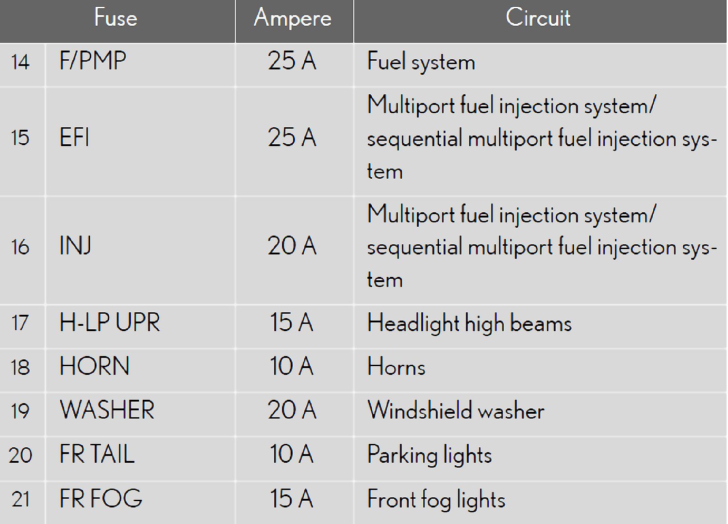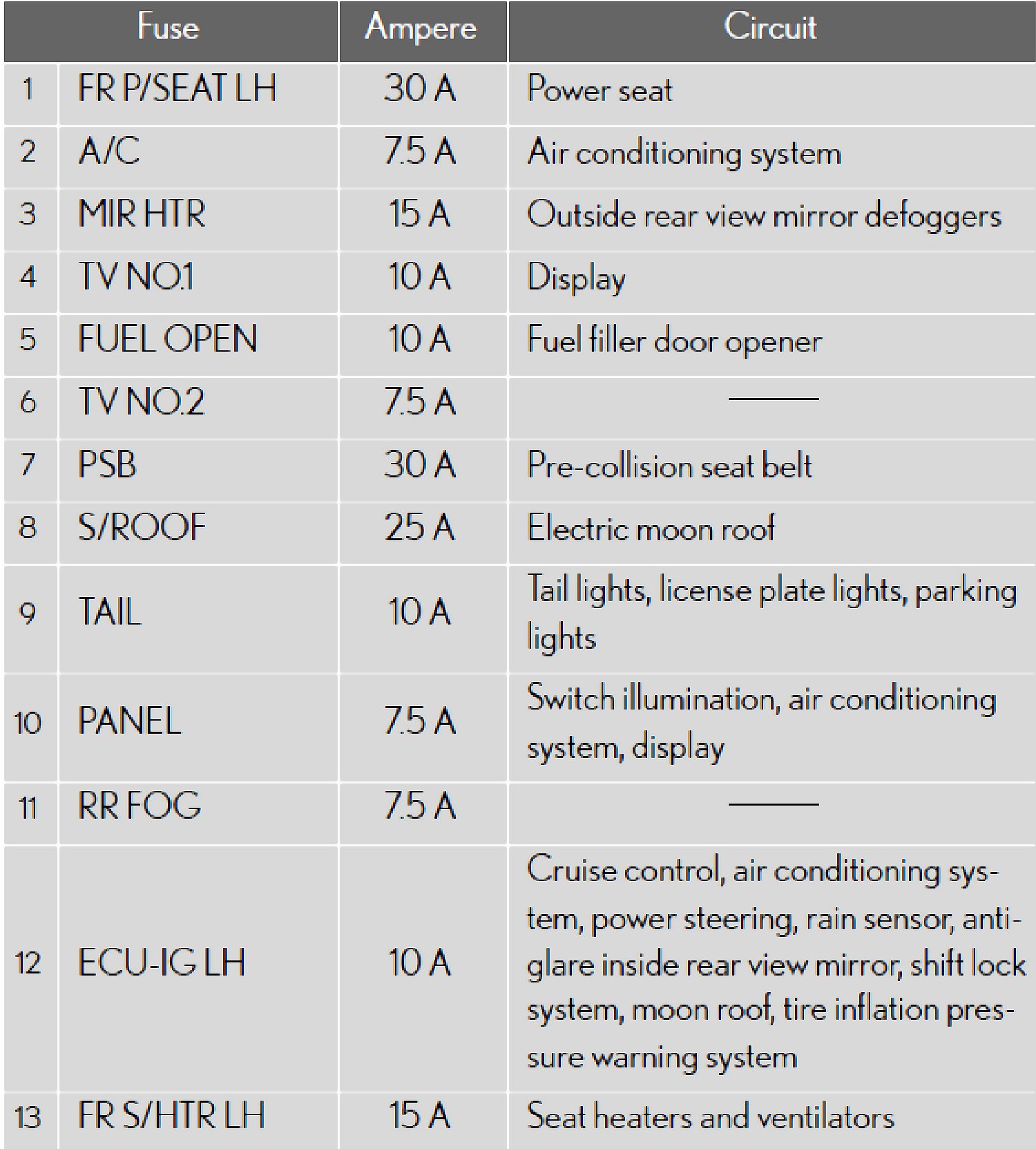 Fuse Location - Passenger's Side Instrument Panel: