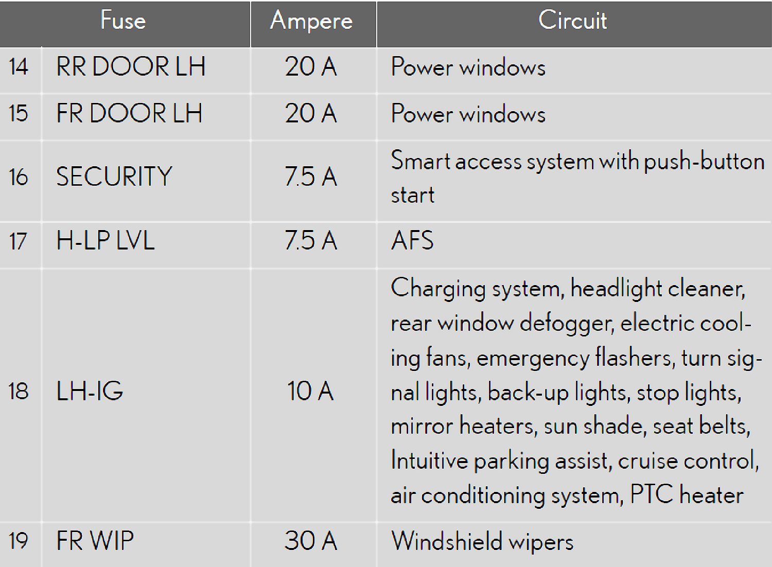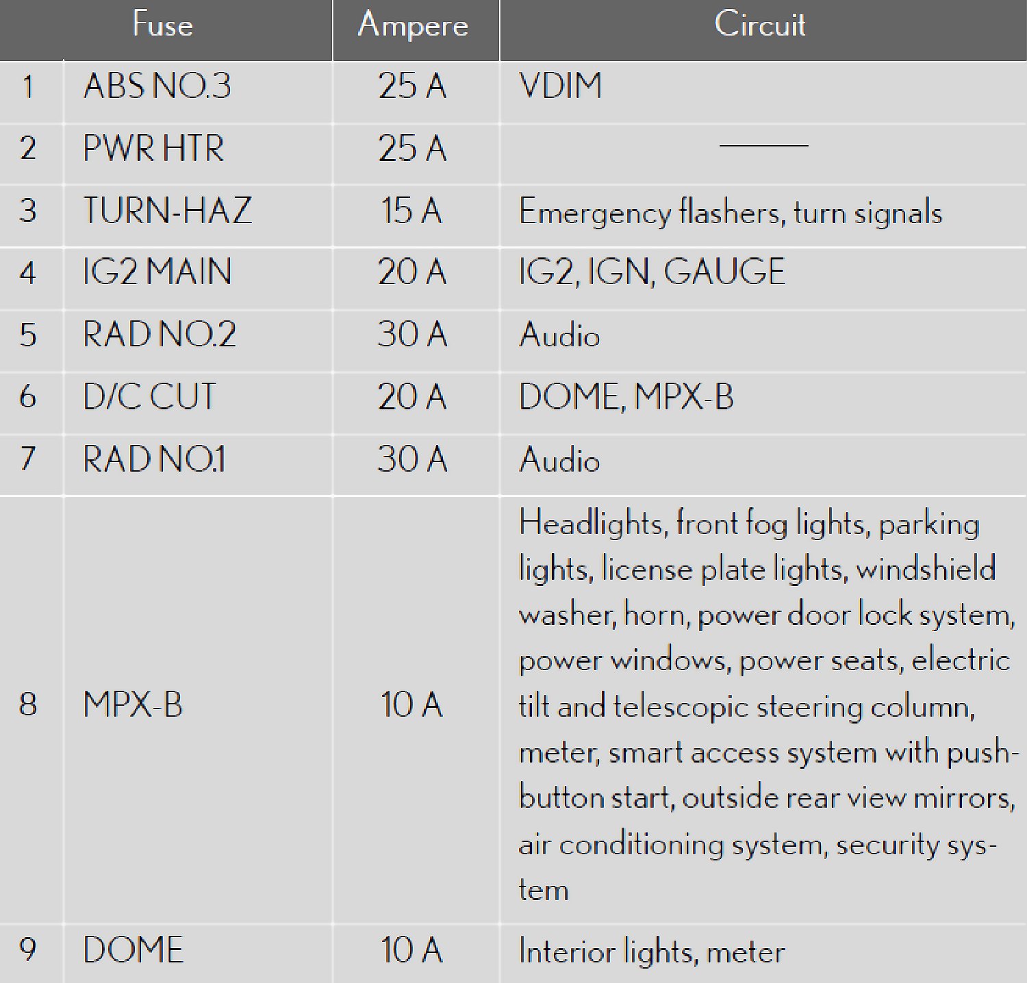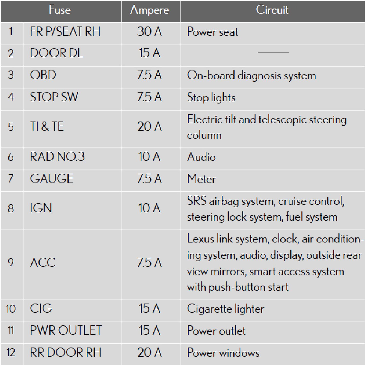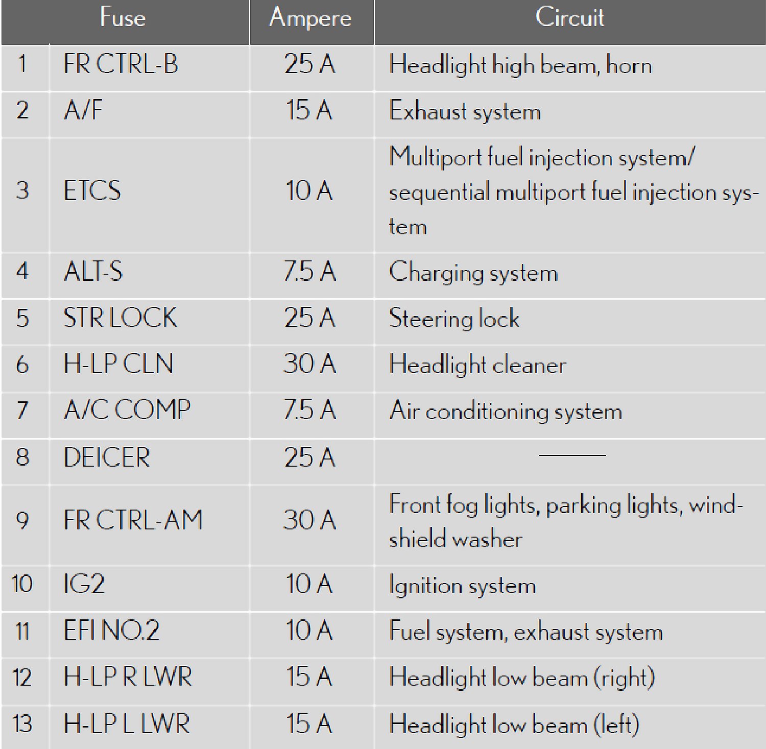 Fuse Location - Passenger's Side Instrument Panel: