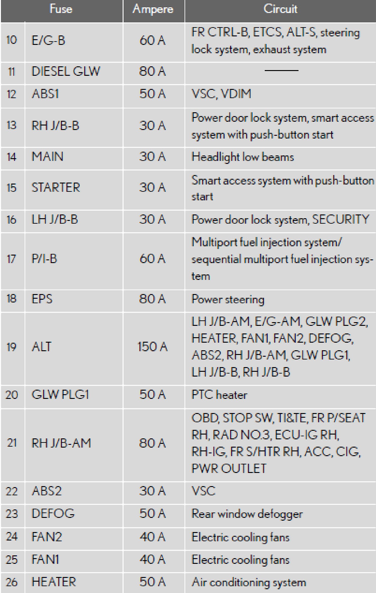 Fuse Layout and Amperage RatingsFuse Block Location - Engine Compartment (Type A):
