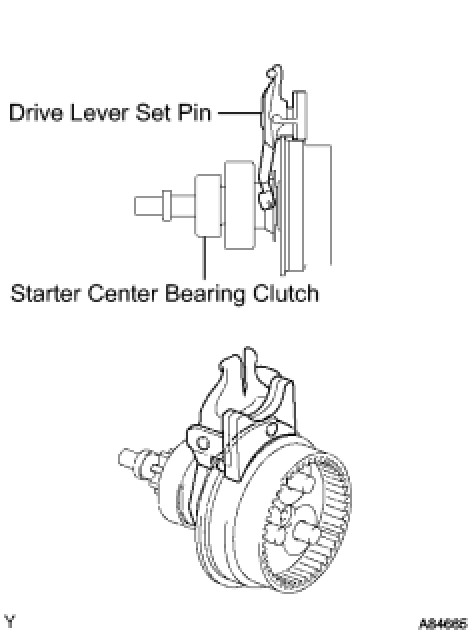 (b) Install the drive lever set pin to the starter center bearing clutch sub-assembly.