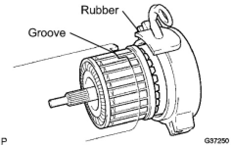 (a) Align the starter commutator end frame rubber with the groove of the starter yoke assembly.