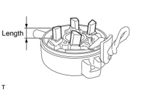 If the length is less than the minimum, replace the starter commutator end frame assembly.