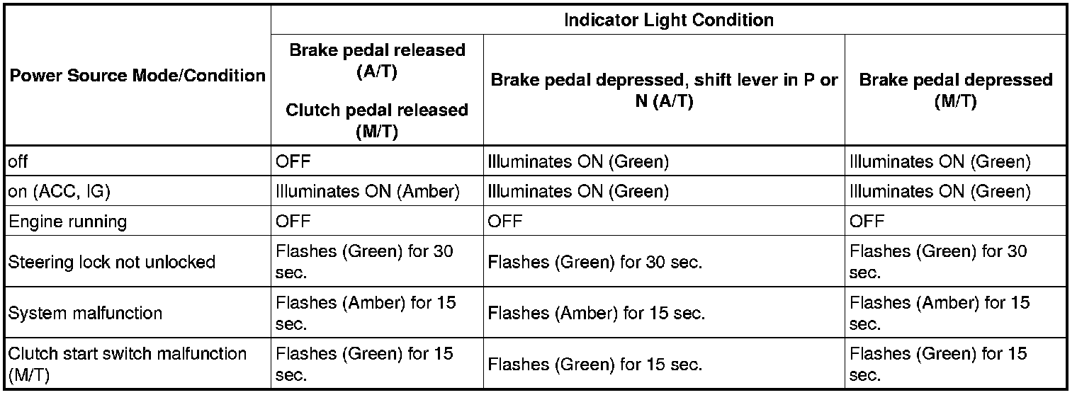 Engine start conditions or system malfunctions can be checked by the status of the engine switch indicator light.