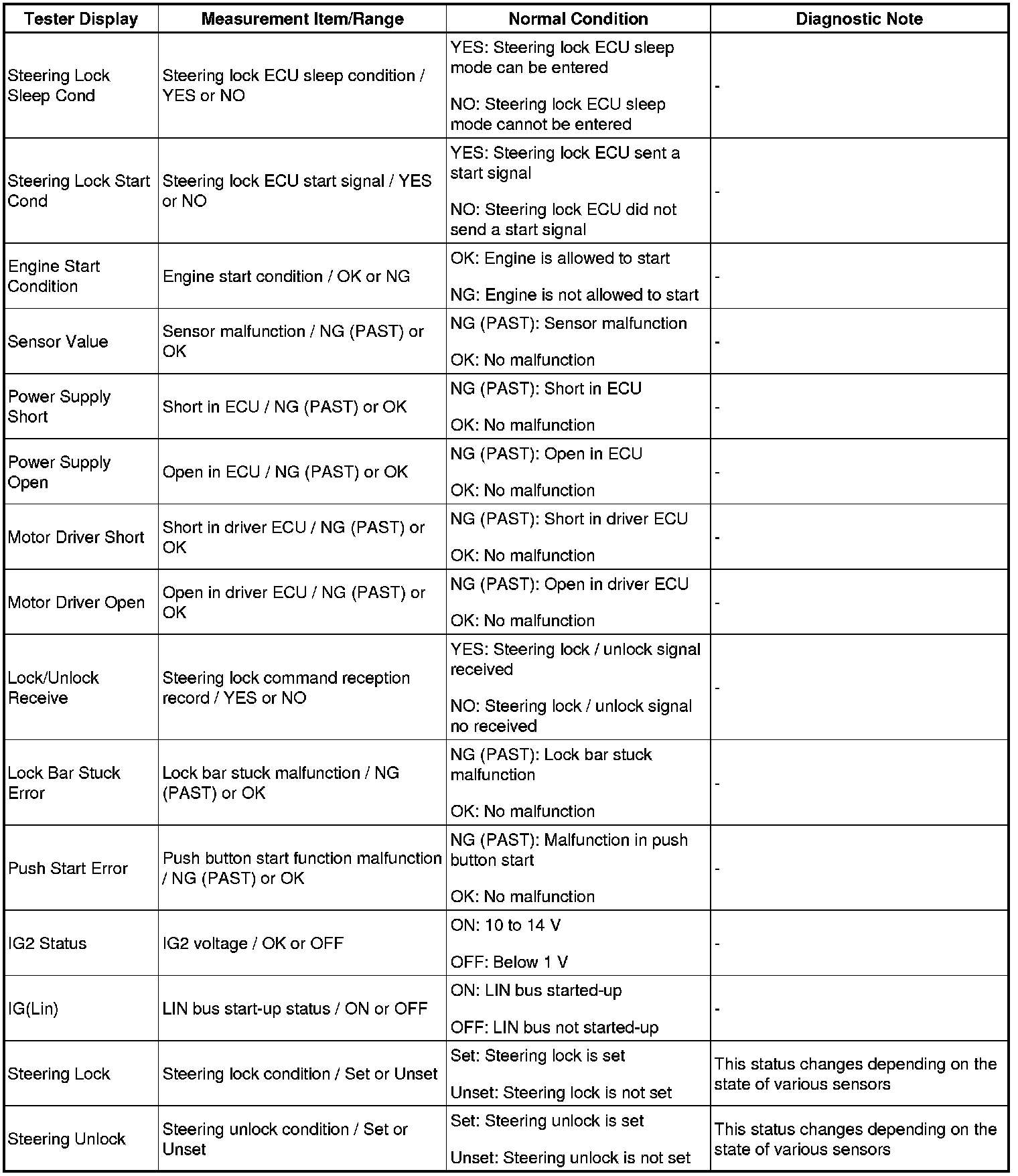 STEERING COLUMN: ELECTRIC STEERING LOCK: DATA LIST / ACTIVE TEST