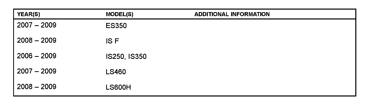 Applicability has been updated to include 2009 model year ES, IS & LS vehicles.