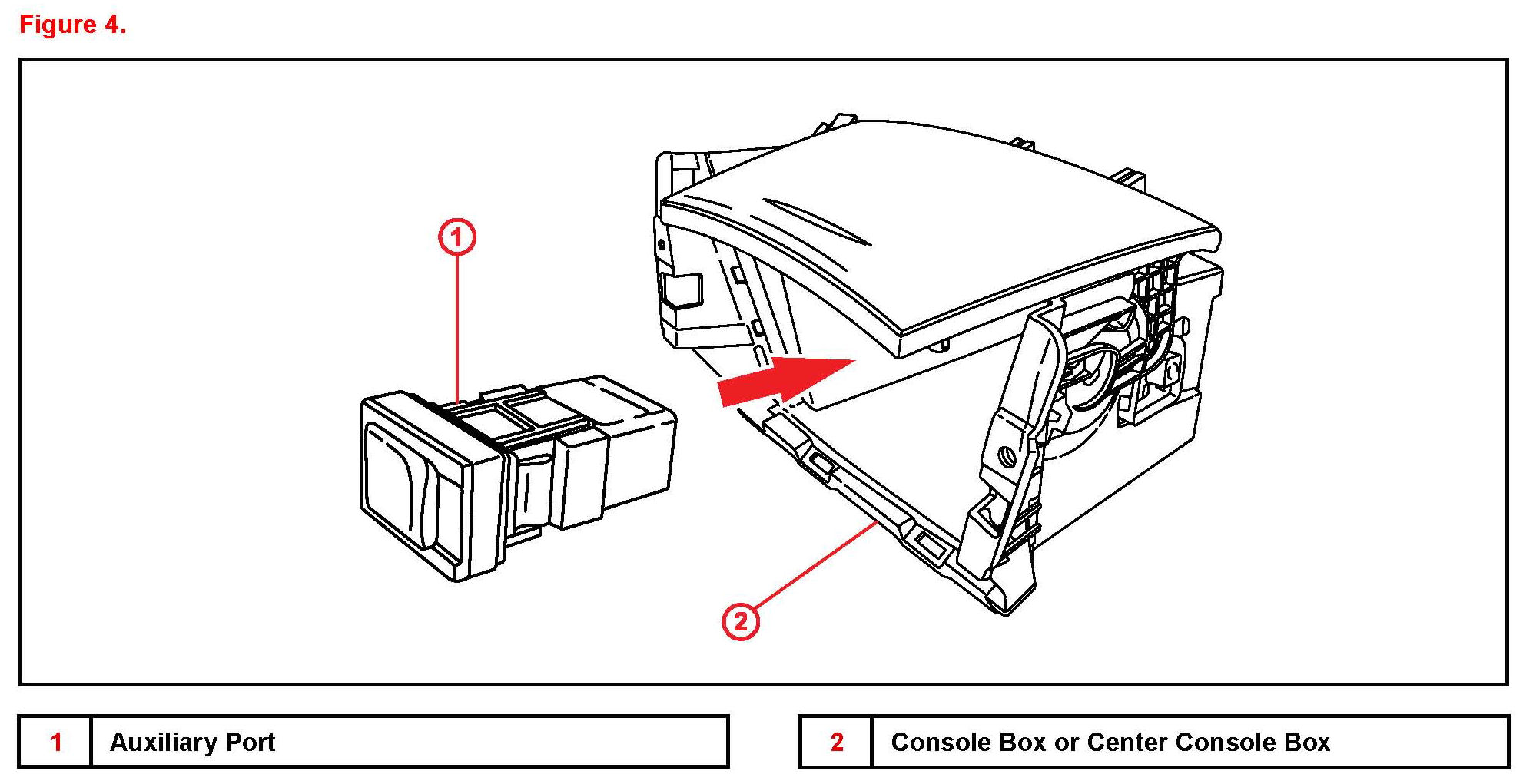 Some customers may notice noise in the auxiliary mode of the radio when using an MP3 player or other external audio source connected to the 12V power port of the vehicle. An improved auxiliary port and in-line filter has been developed to improve this condition. Use the repair procedure to install the new in-line filter and auxiliary port.