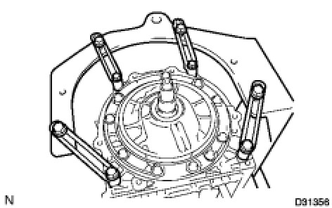 (a) Remove the 9 bolts from the transmission case.