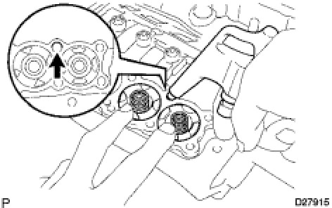 (a) While blowing compressed air into the oil hole, remove the C-3 accumulator piston and the 2 springs.