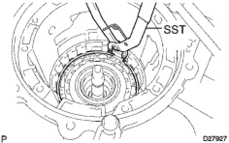 (a) Using SST, remove the snap ring.