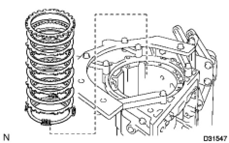 (a) Remove the 4 plates, 5 discs and 2 flanges from the transmission case.